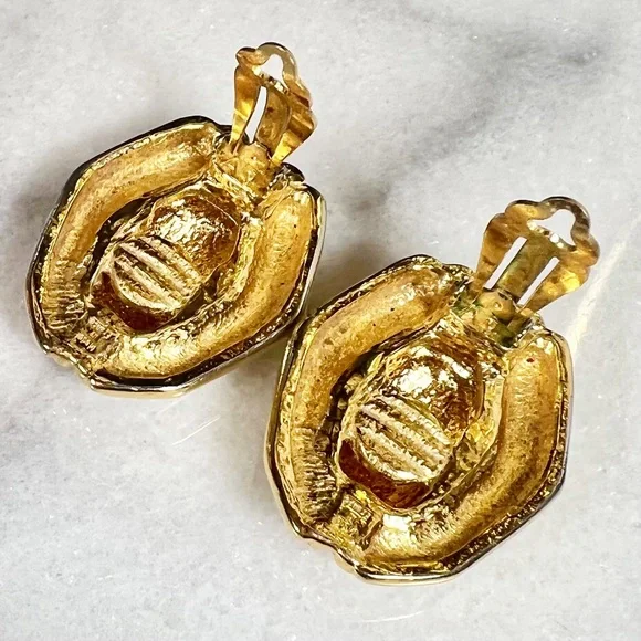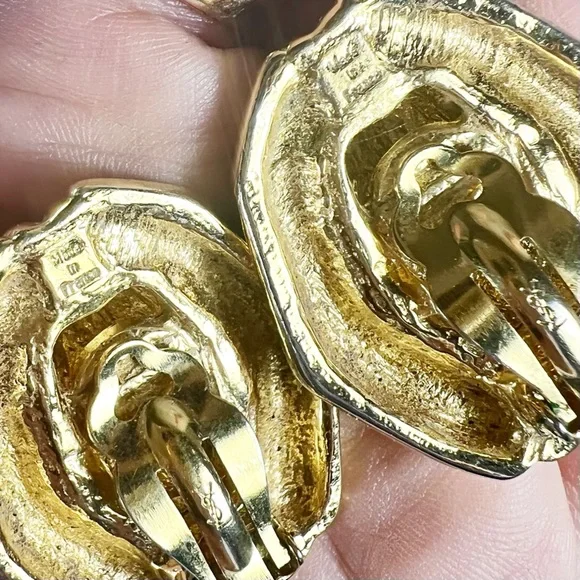 Saint Laurent “YSL” Vintage Gold Large Clip-On Earrings