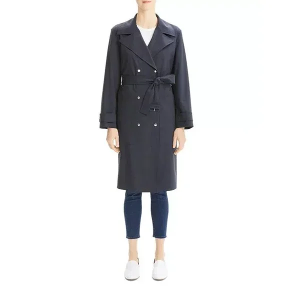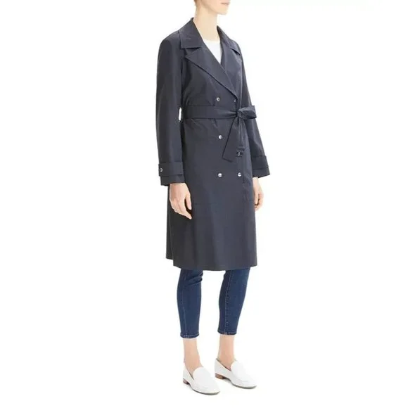 Theory Military-Style Trench Coat Core Navy Blue Size M MSRP $795