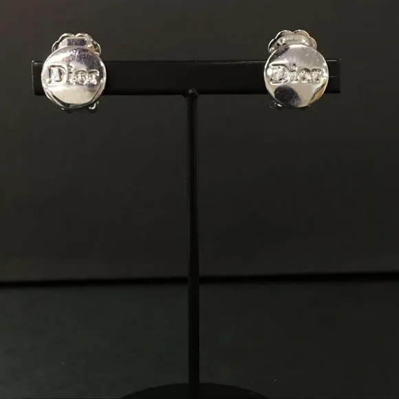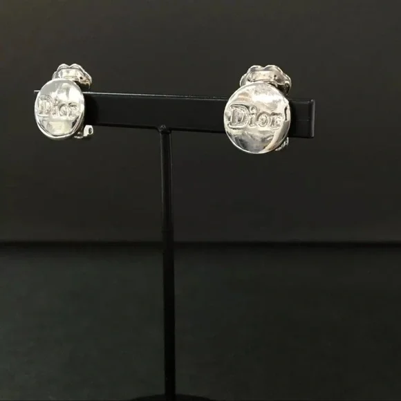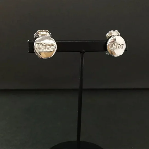 AUTH Christian Dior CD Silver Logo Earrings
