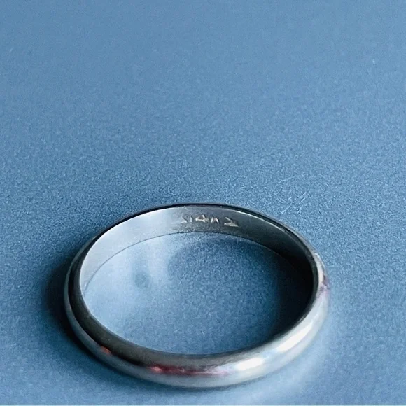 14K White Gold Vintage Stackable Ring Band Size 5.5✦ Metal: 14k white gold, tested ✦ Marked: “14k”✦ size 5.5✦ Measures 2.5mm wide✦ Weight: 1.9g✦ In good pre-owned conditionA199!!! The other 2 rings in the last pictures are also 14k gold and are available. Please ask me for the details or find them among my listings!!!*VINTAGE NOTE: Please remember that this item has already had a previous life. Therefore, there might be the occasional imperfection.Trifari, vintage, antique, Jensen, Navajo, Kendra Scott, Pandora, trollbeads, sajen, mikimoto, swarovski, tacori, buccellati, taxco, Native American, Zuni, estate, pollack, bisbee, ring, necklace, brooch, bracelet, king baby, Kenneth jay lane, chrome hearts, silpada, Napier, Sarah coventry, krementz, carolee, heidi daus, mejuri, , Agmes, francesca villa, Sophie Brahe, prounis, pariah, erede, jolly bijou, alexis bittar, sauer, alex and ani, Charles garnier, h stern, Anna sheffield, Kramer, hobe, Haskell, eisenberg, schiaparelli,, Carnegie, bogoff, loree rodkin, hatton labs, good art hlywd, Ross Simons, Lagos, monet, Coro, Weiss, Tiffany & co, bvlgari, Cartier, Roberto coin, , Ysl, Dior, Chopard, John hardy, Scott , Konstantino, van cleef, boochier, le vian, Harry Winston, Piaget,