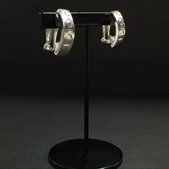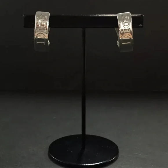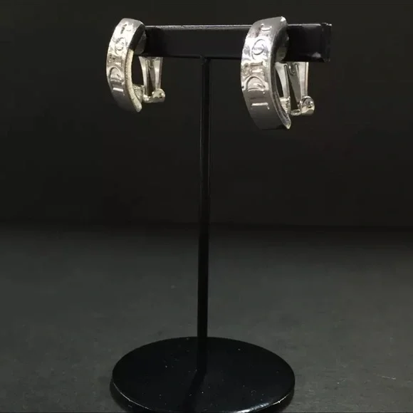AUTH Christian Dior CD Vintage Logo Clip Earrings Silver