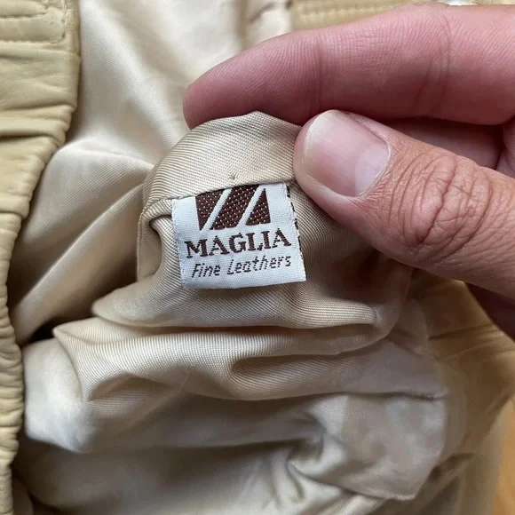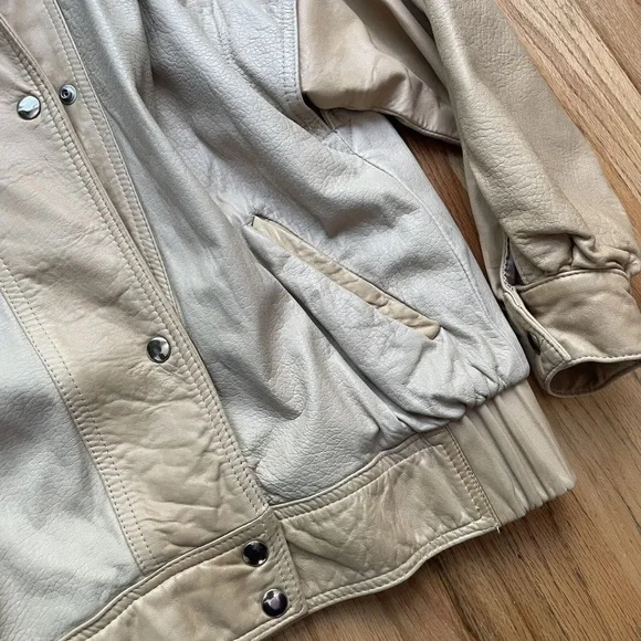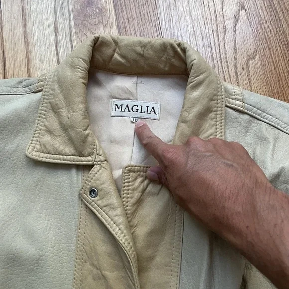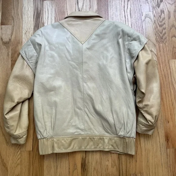 Women´s Vintage 70´s Maglia Fine Leather Color Block Bomber Button Jacket Sz 10