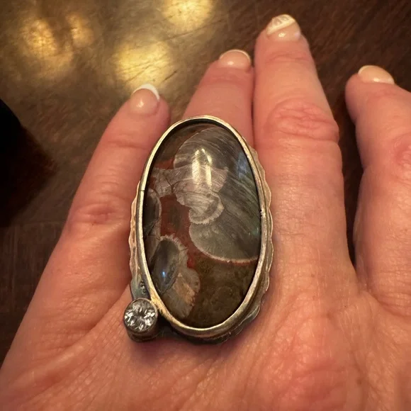 Elegant Sterling silver ring featuring a unique mushroom jasper stone design. Perfect for adding a touch of sophistication to any outfit.
