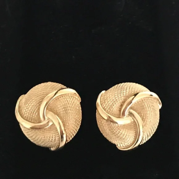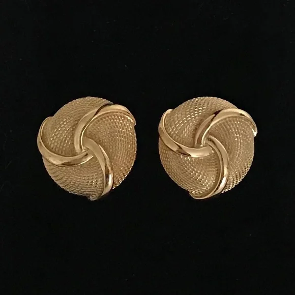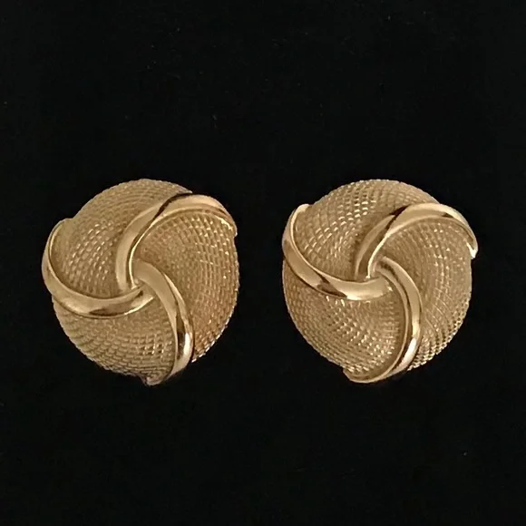 Rare vintage CROWN TRIFARI gold tone statement earrings!Clip-on earrings from the 1960s with a swirl and basketweave design. *Price firm — rare vintage item Impeccable...