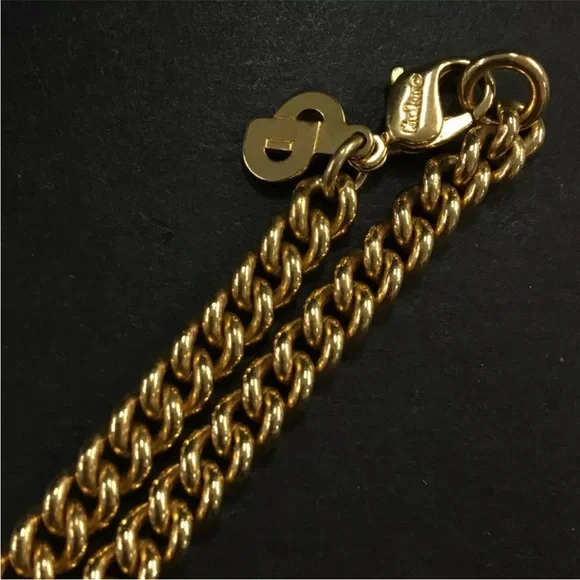AUTH Christian Dior CD Gold Plated Chain Necklace