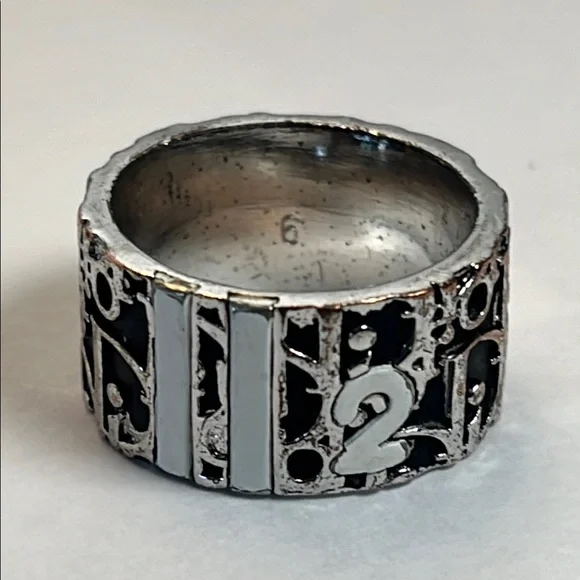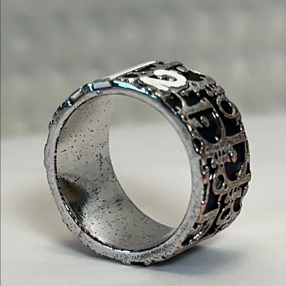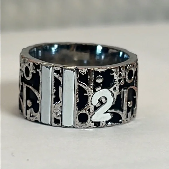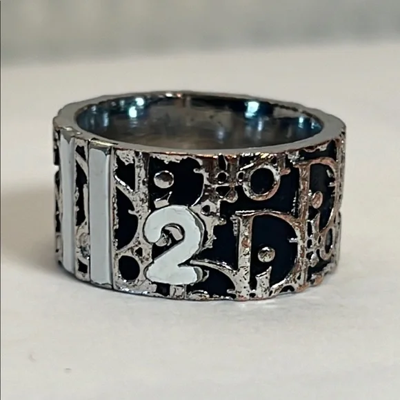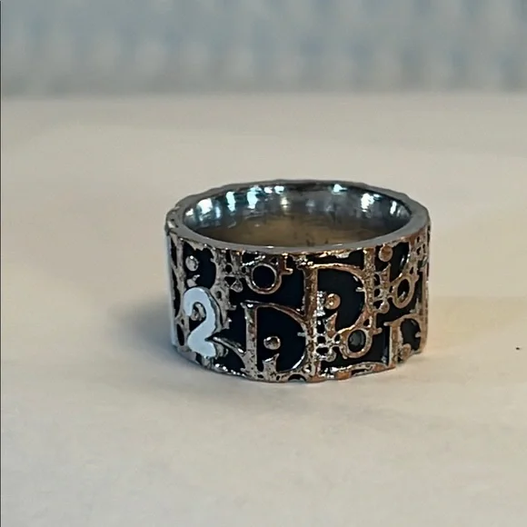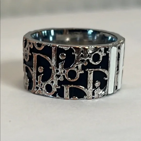 Stylish Dior Trotter ring size 6 featuring a sleek silver and black design.Has wear and tarnish refer to photos prior to placing offer/bid sold as is. Perfect for adding a touch of elegance to any outfit.
