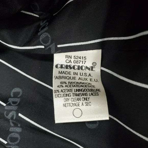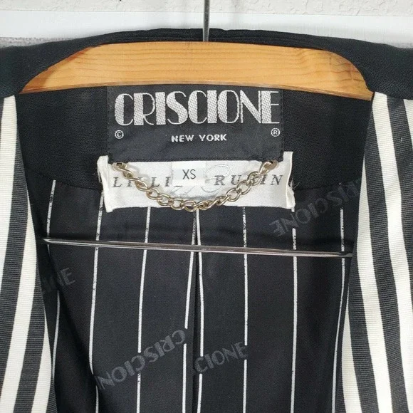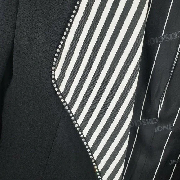 Criscione Vintage Black White Striped Collar Black Blazer Jacket Rhinestone