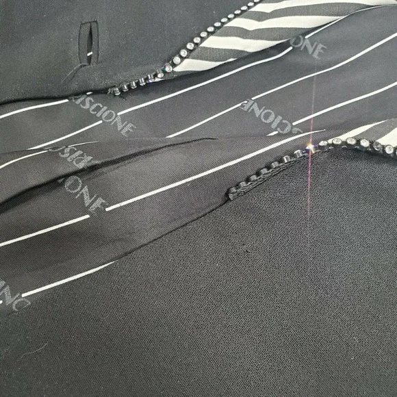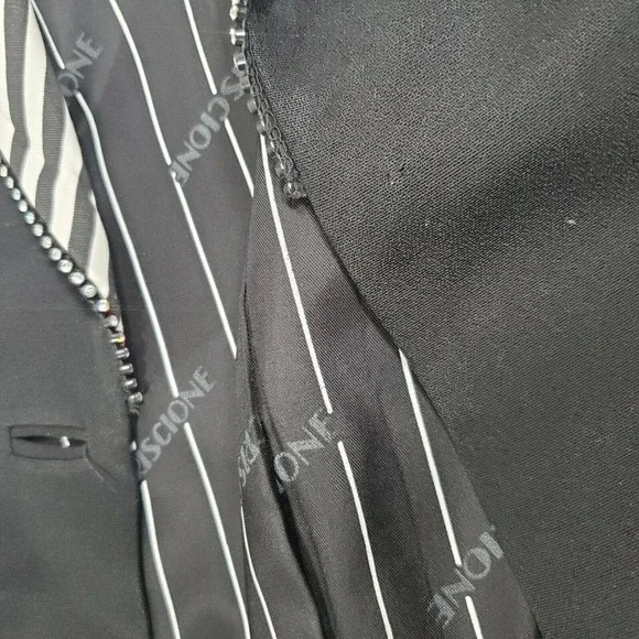 Criscione Vintage Black White Striped Collar Black Blazer Jacket Rhinestone.NO BUTTON. SEE PICTURES.Extremely light/small discoloring on sleeve. SEE PICTURES.