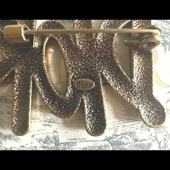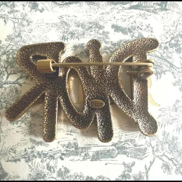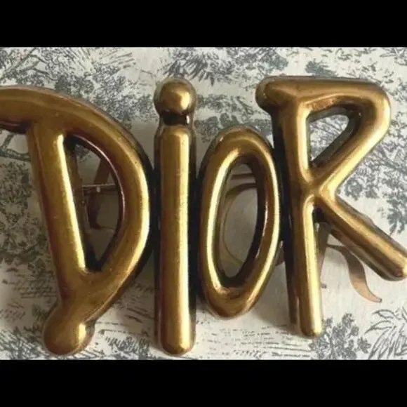 Christian Dior Brushed Deep Gold "Dior" Brooch (CDXX032)