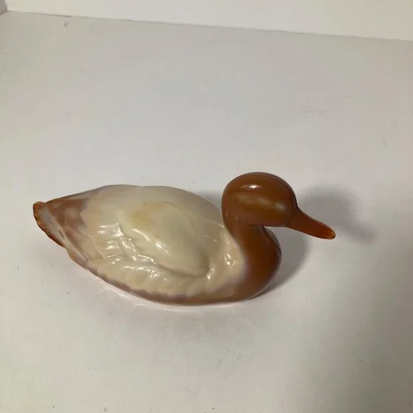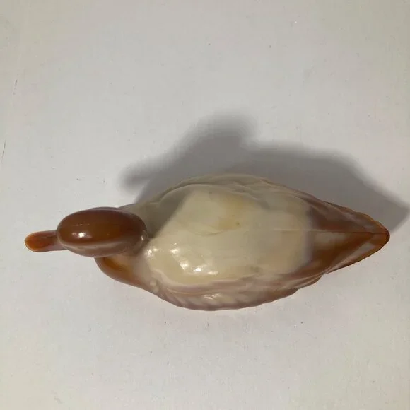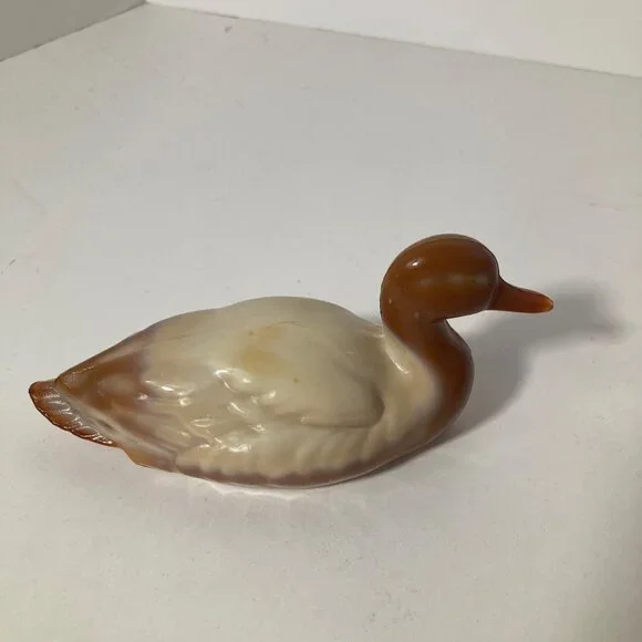 Fenton Chocolate Slag Glass Mallard Duck Figurine 2 x 5" Brown CreamPreowned in good condition no chips ot cracks noted, a few rough edges at mold line on beak & tail, not...