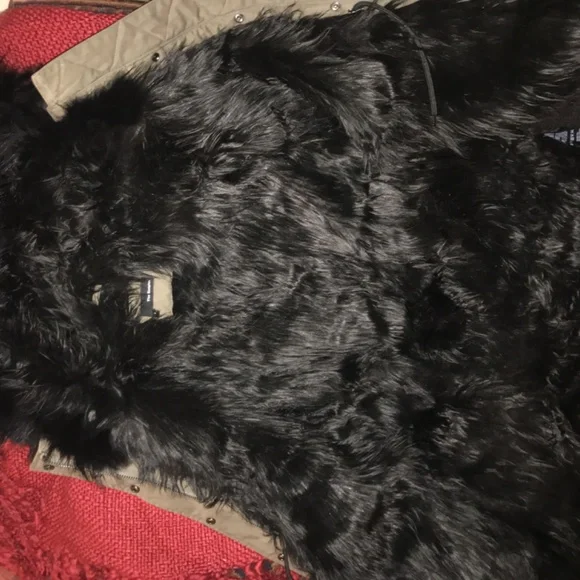Green canvas jacket lined with faux fur in excellent condition