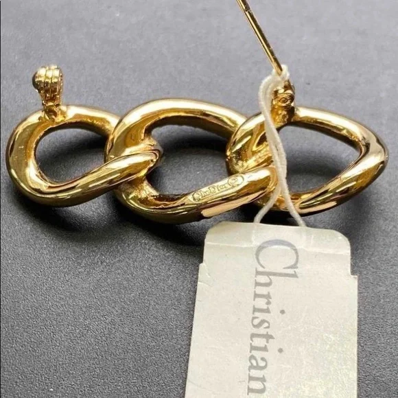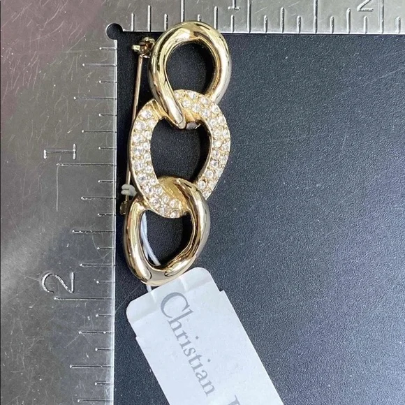 NWT Christian Dior, Swarovski Crystal, Gold Brooch. This signed, Gorgeous Dior, gold and Swarovski Crystal tri-link brooch that makes a statement!Make an offer and take me home!