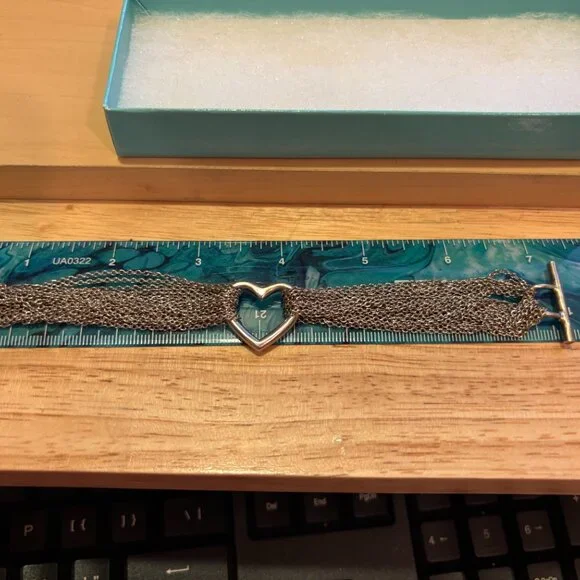 Tiffany & Co. 925 Sterling silver open heart 7.25 inch multi chain bracelet.