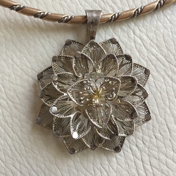 Delicate Vintage silver flower pendant with sterling silver and gold collar