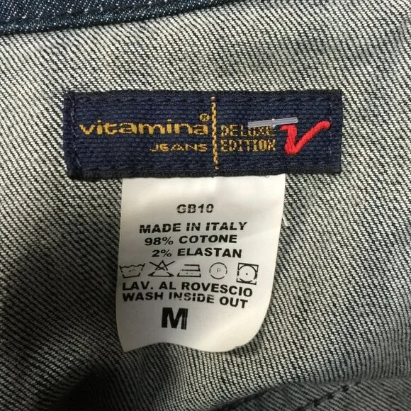 Vitamina Jeans Deluxe Edition Denim Jacket Medium Blue Snap Stretch Italy Made