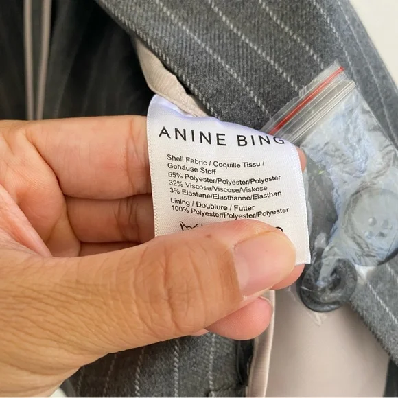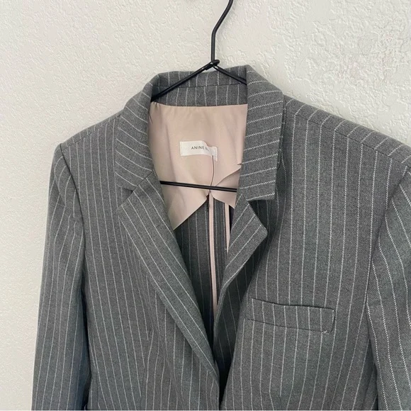 ANINE BING Women’s Small Gray Pinstripe Blazer JacketSoft fabric - polyester viscose and elastane blend. Designer made beautiful neutral jacket for everyday business casual...