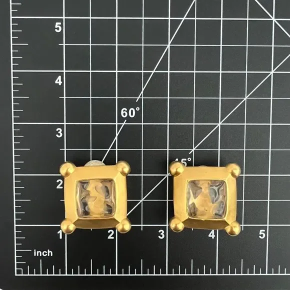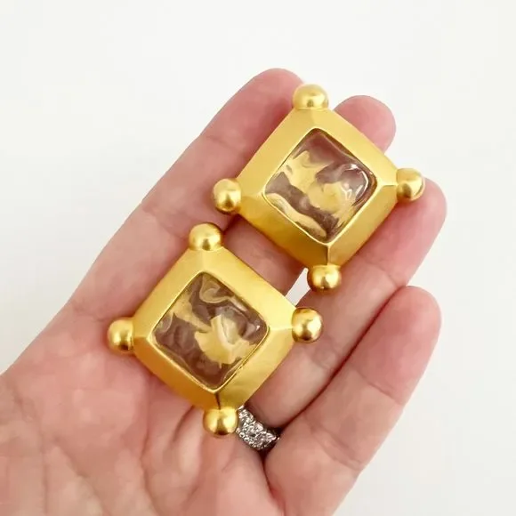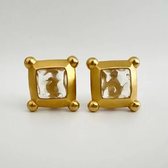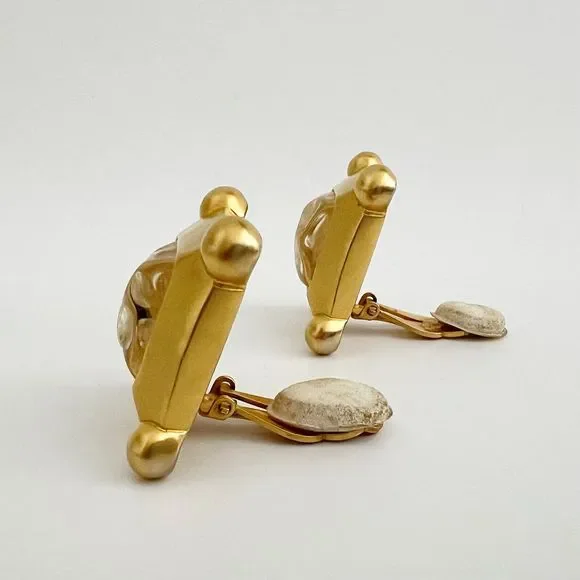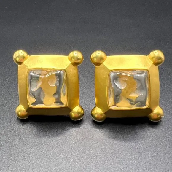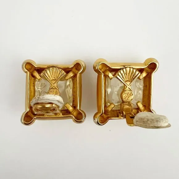 Vintage Karl Lagerfeld Clip On Earrings Gripoix Glass Gold Tone Square Signed