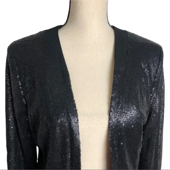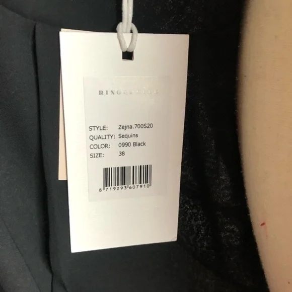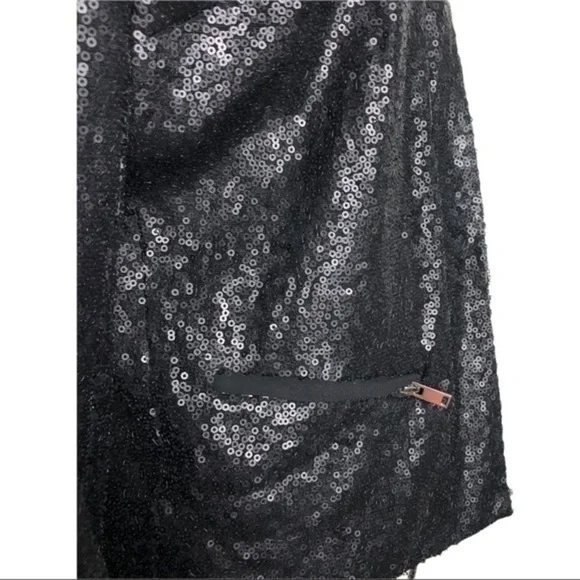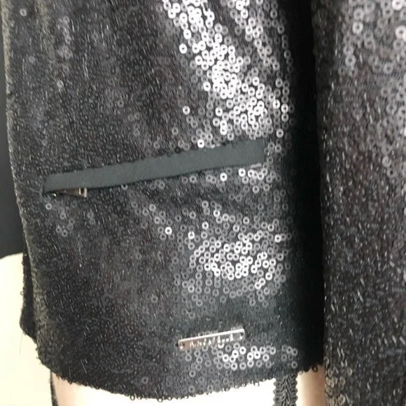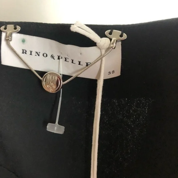 NWT Rino & Pelle Sequins Black Crop Blazer Size 38fully linedouter shell: 100% polyester lining: 100% polyesterlight padded shoulder 2 front zip pockets gorgeous blazer for as an outer jacket for cocktail outing, party and night out length 21.5pit to pit 19size 38brand new with tag