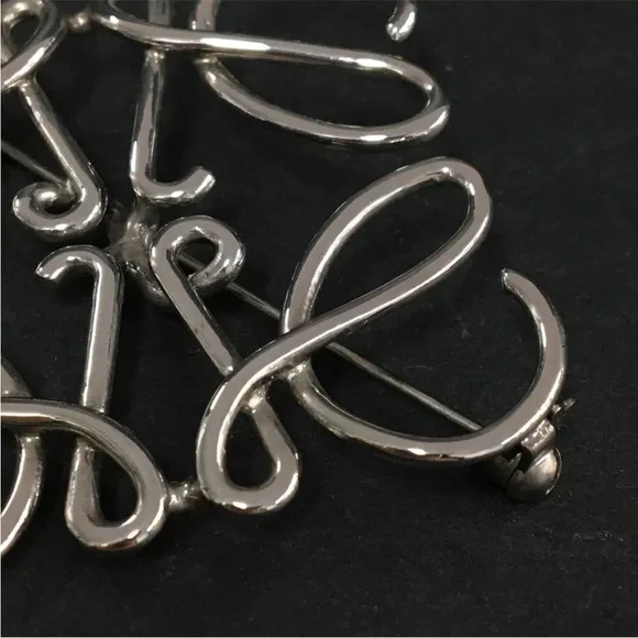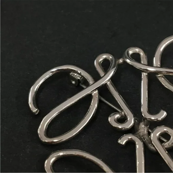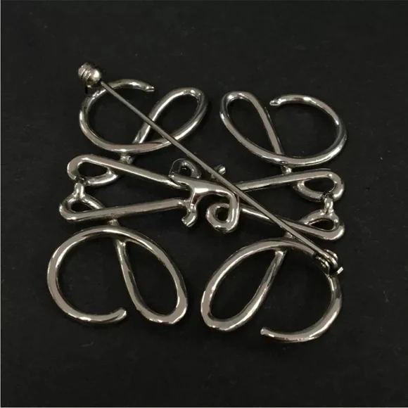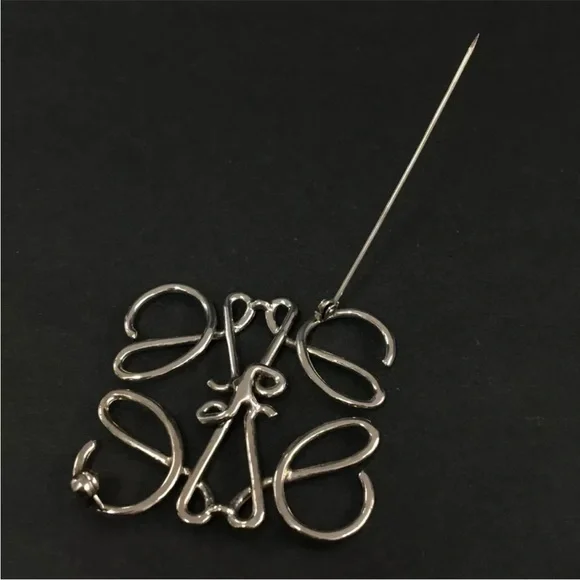 AUTH Loewe Logo Silver Brooch Pin