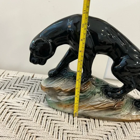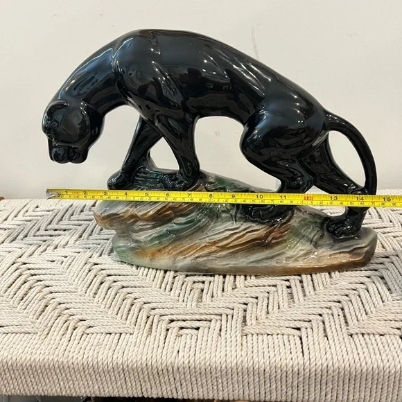 Elegant black panther sculpture crafted with attention to detail. Perfect for adding a touch of sophistication to your home decor.