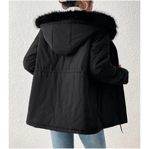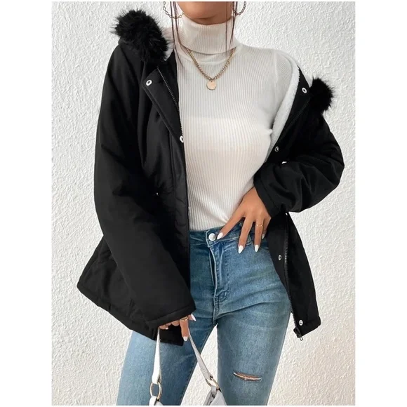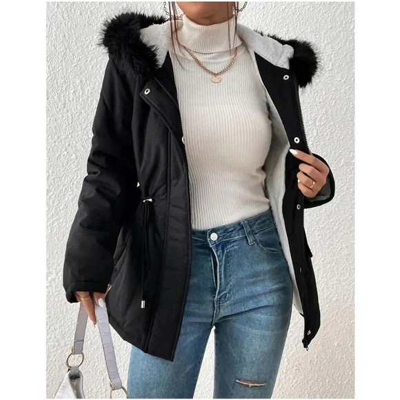 Cozy Vegan Fur Sherpa Lined Hoodie Parka Jacket