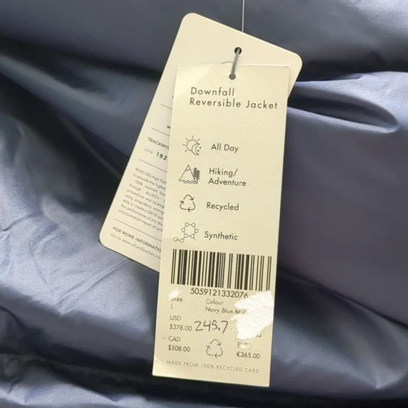 High Performance Recycled Down jacket, incredibly warm. I live in Phoenix so I should´ve thought twice before buying it!Size Large, but Sweaty Betty tends to run big. This...
