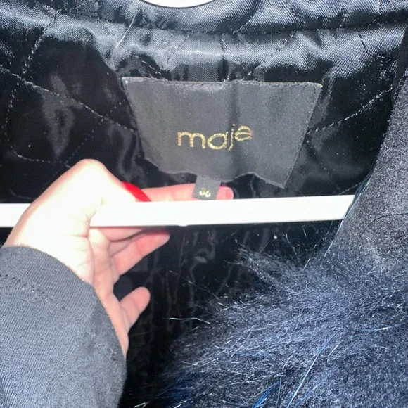 MAJE navy fur coat