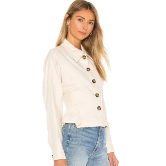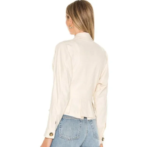 LPA Easton Jacket in Oatmeal Linen NWT Size Small55% linen, 42% rayon, 3% elastane. Hand wash cold. Front button closures. Buttoned cuffs. Pleated fabric at waist. Imported. Sold Out OnlineRevolve Style No. LPAR-WO151. Manufacturer Style No. LPOW61 U20.