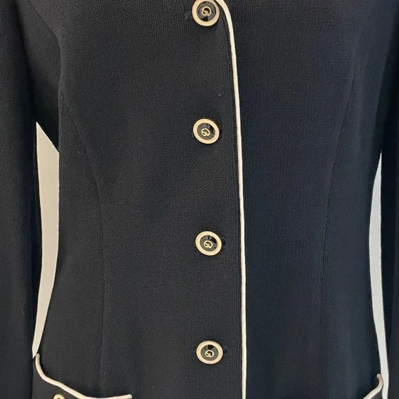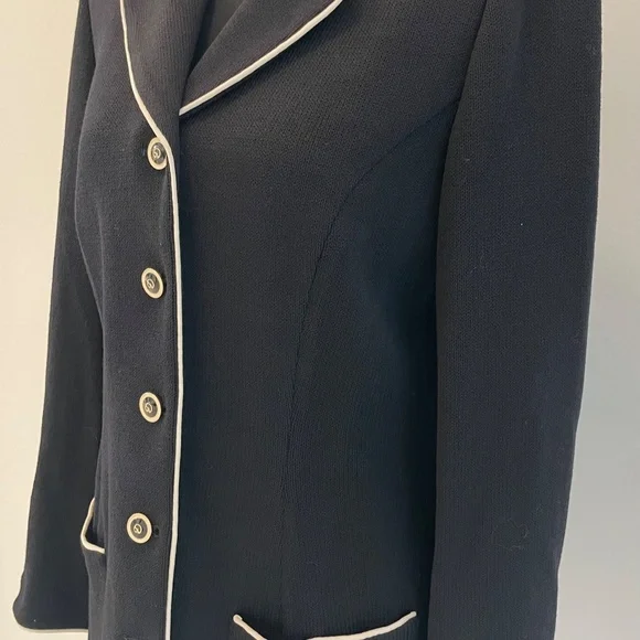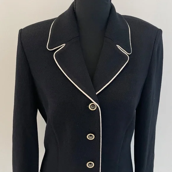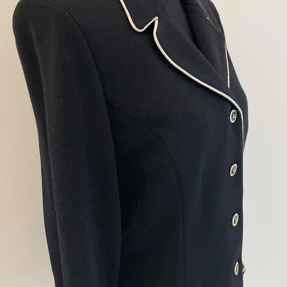 St. John Couture by Marie Gray Knit Blazer | Woman´s Knit Blazer with White Trim| | Black, White & GoldButtons | Color: Black & White| Beautiful conditionSize 6 Overall...