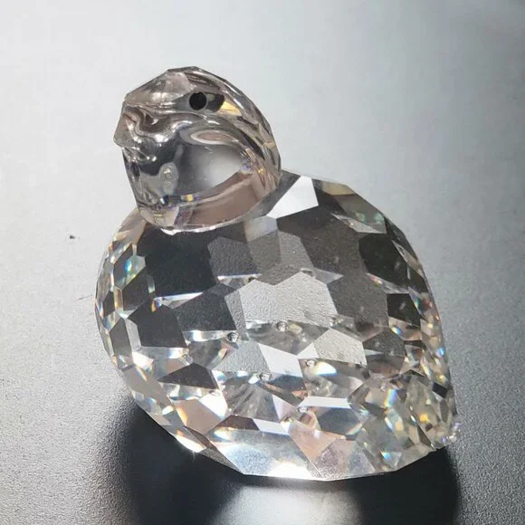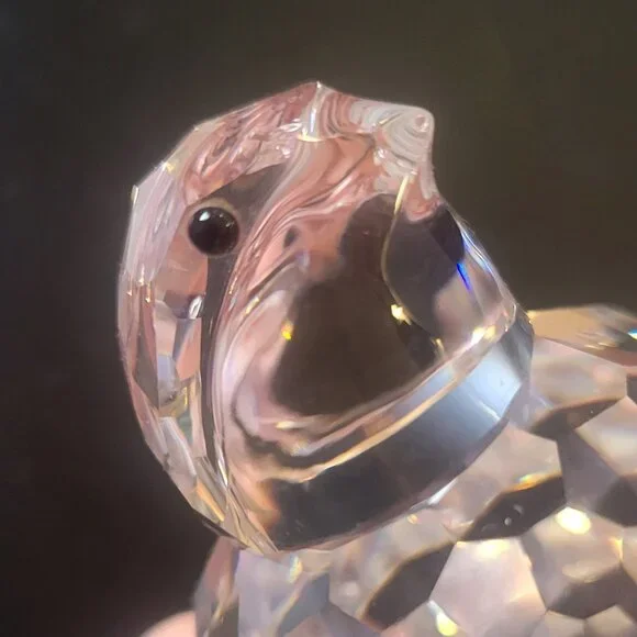 vintage retired Swarovski large Partridge /Quail Bird Crystal Animal Figurine 014468 Rare Variation var. 1with 3-panel bottom (see photo # 3). It´s stamped Swarovski old block logo as shown .The figurine is in good used condition with small defects: there is a fleabite on front belly, and a small chip /scuff at on the head at approx. 1/3 position between the two eyes (last 3 photos).Original box not available.
