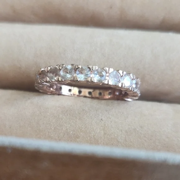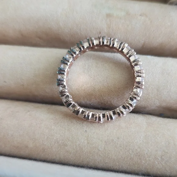 1.80 ct. t.w. Morganite Eternity Band in 18kt Rose Gold Over SterlingSoft and feminine, this eternity ring glows with warm pink tones. 1.80 ct. t.w. morganite encircles a beautiful 18kt rose gold over sterling silver band. 1/8" wide. Morganite eternity band.sz 9any reasonable offer will be considered!