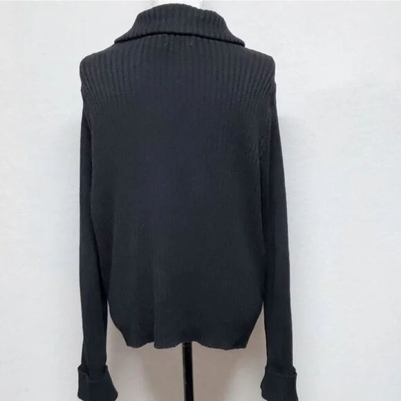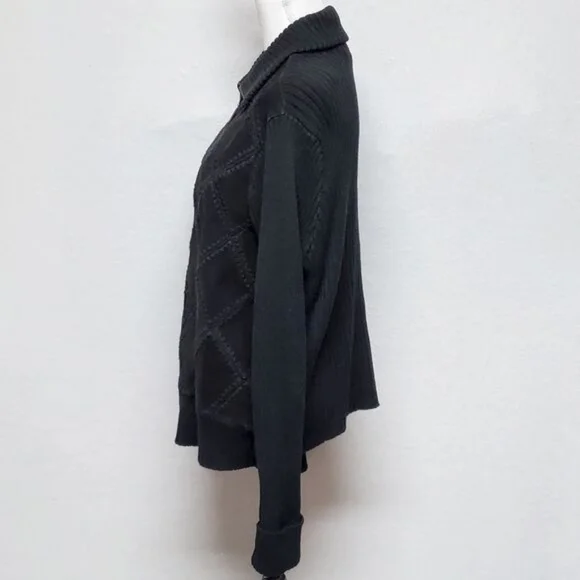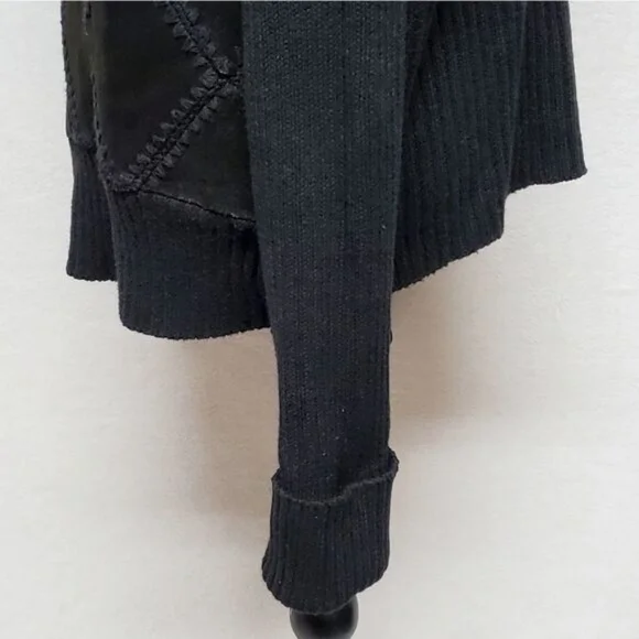 White Stag Vintage 90s Black Suede Patchwork Leather Ribbed Knit Sweater Jacket