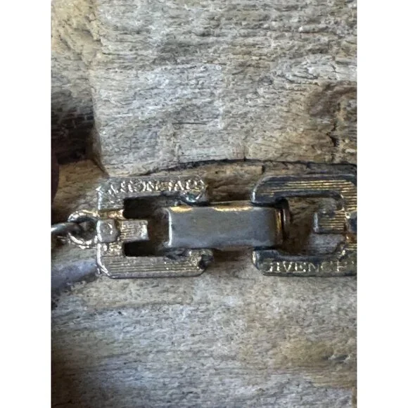 This stunning vintage Givenchy necklace features a captivating blue and purple crystal pendant set in a gold-tone frame. The intricate chain design adds elegance, making it a...