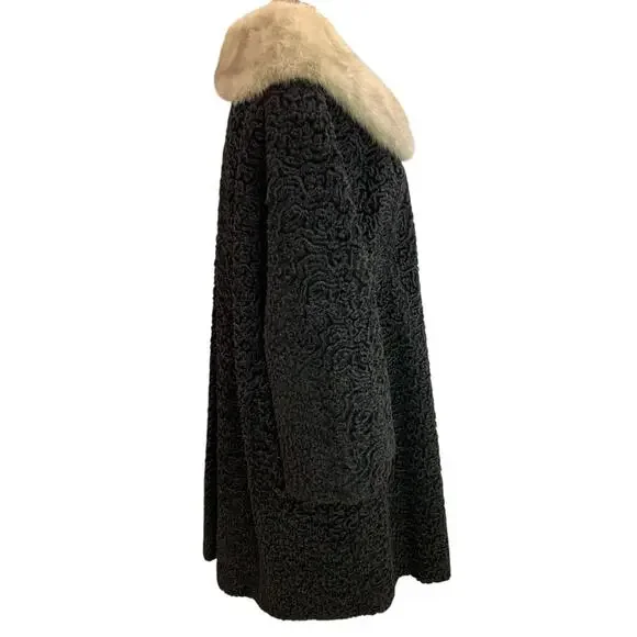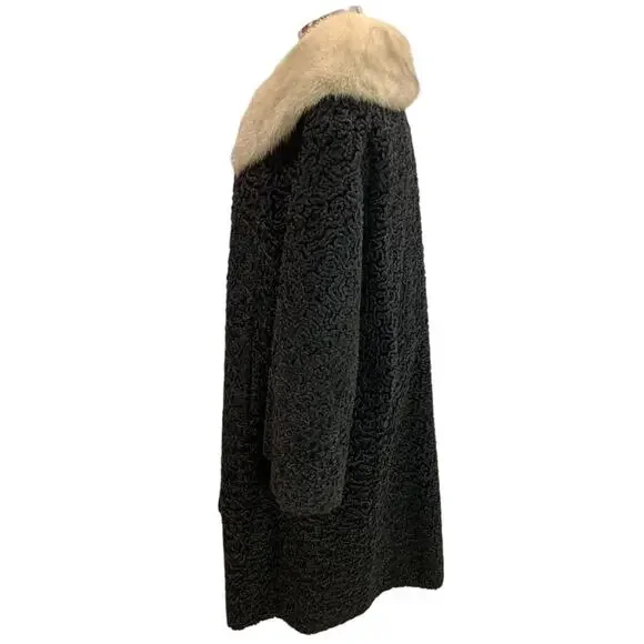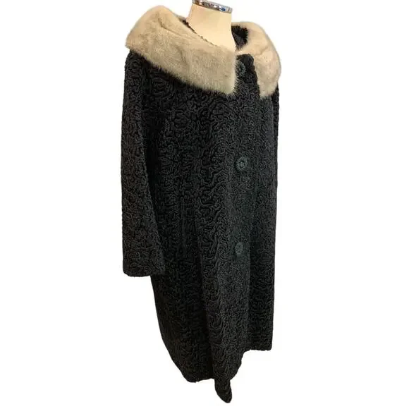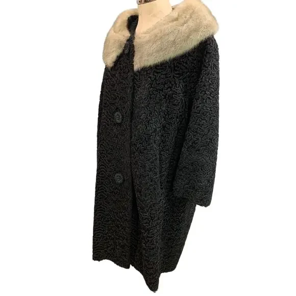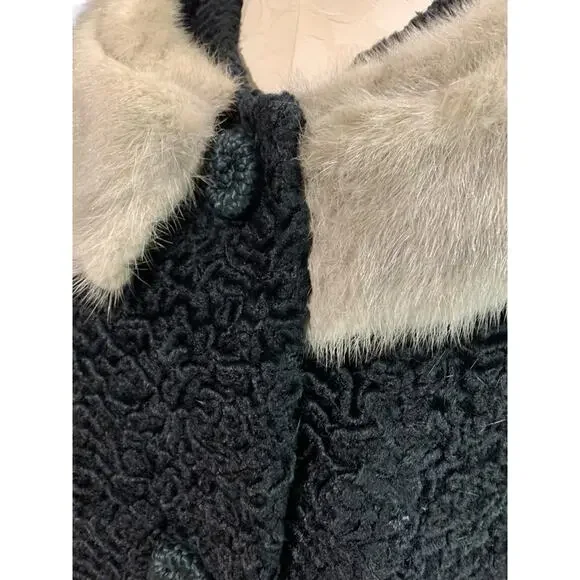 1950s Lambs Wool Mink Collar Womens Persian Coat Astrakin France