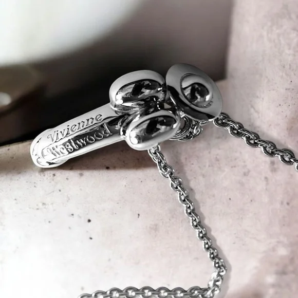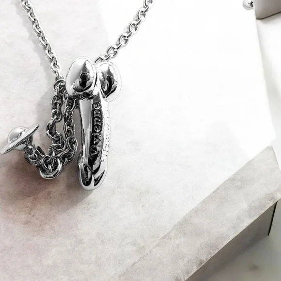 Orb + Phallus Pendant Necklace NWT | Iconic & UnapologeticDescription:Say hello to the necklace that knows it’s a little scandalous—and totally iconic. This beauty takes her classic Orb and gives it an extra… twist. Meet the silver-tone Penis Pendant Necklace, engraved with “Vivienne” and topped with the signature Saturn Orb. Yes, it’s cheeky. Yes, it’s Vivienne. And yes, it turns heads every single time.Condition: New with tags (NWT)Material: Brass with luxe silver-tone platingChain Length: 31.5" (80 cm)Pendant Size: 1.57" (4 cm)Details: Signature Orb, bold design, serious attitudeOriginal Retail: $305Wear it layered, wear it solo—just wear it with confidence.Rare, retired, and ridiculously fun. Grab it before it disappears into fashion folklore.