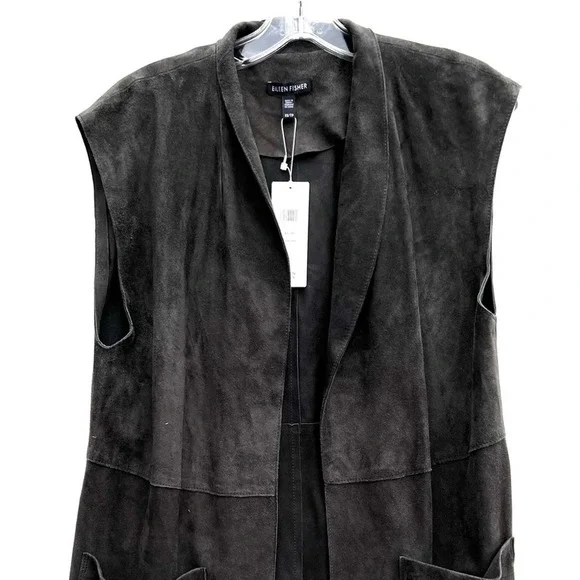 New with tags Eileen Fisher 100% goat leather suede vest. Retails for $798. This is stunning19” bust x about 25” length.