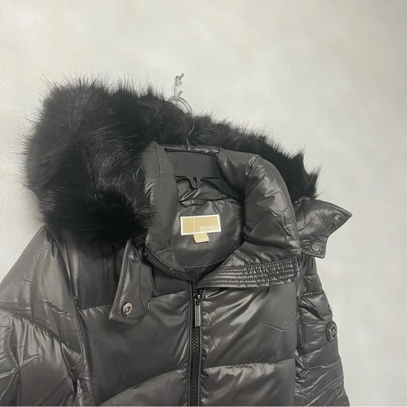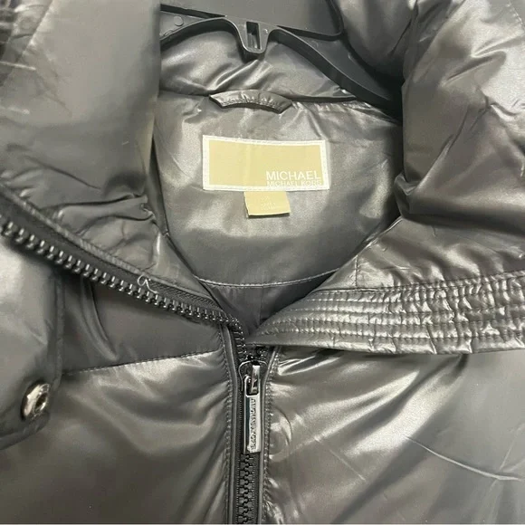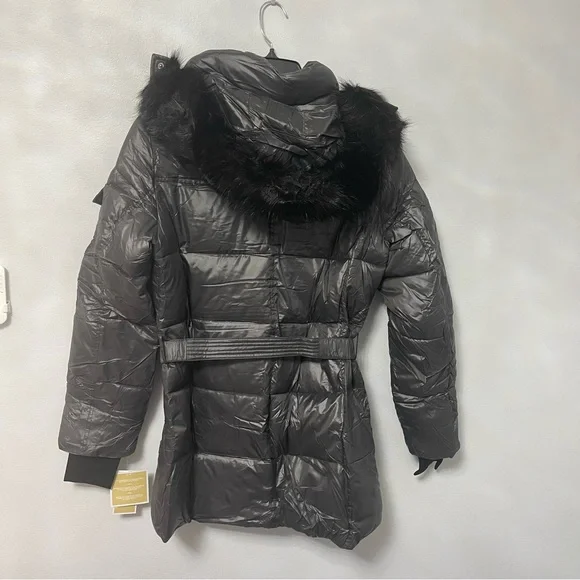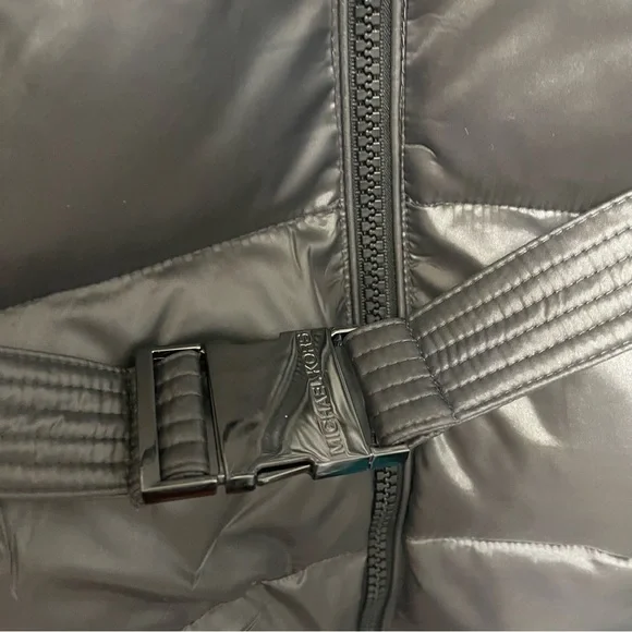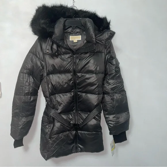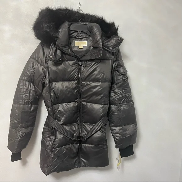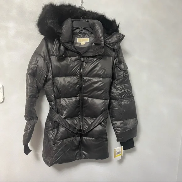 New with tagMichael KorsFaux Fur Belted Hooded Puffer JacketColor: GunmetalAvailable in sizes: medium & largeFaux fur trimShining quilted puffer jacketCozy & warmFashionable and stylish29" length (this measurement is for size S)Attached hood with faux fur trimLong sleeves with rib knit cuffsFront zip closureBelt detailDual front zip pocketsLined100% nylonMachine washP12-21-312-32LRG-BX-JK13(2)BIN-BS001