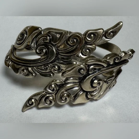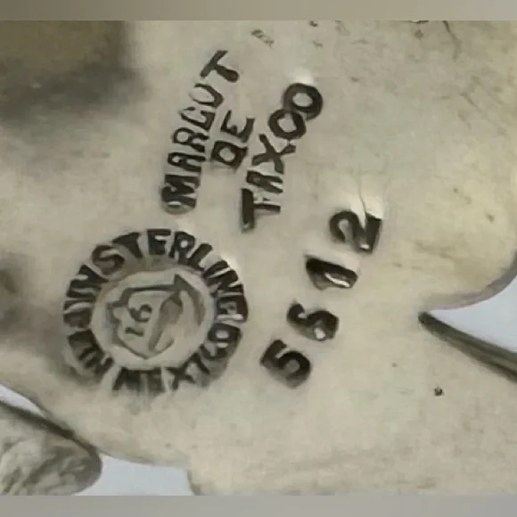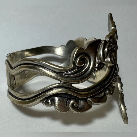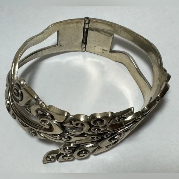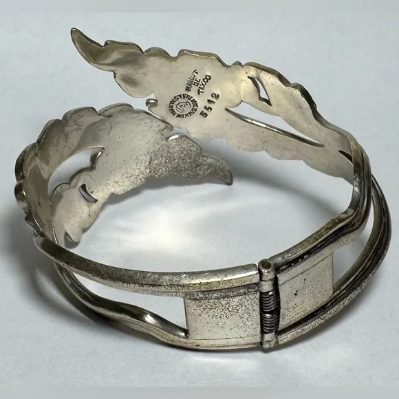 Vintage MARGOT DE TAXCO Signed Sterling Silver Clamper Bracelet Mark 16 5612Stamped Sterling About 1” x 2.5”Circa 1950’s
