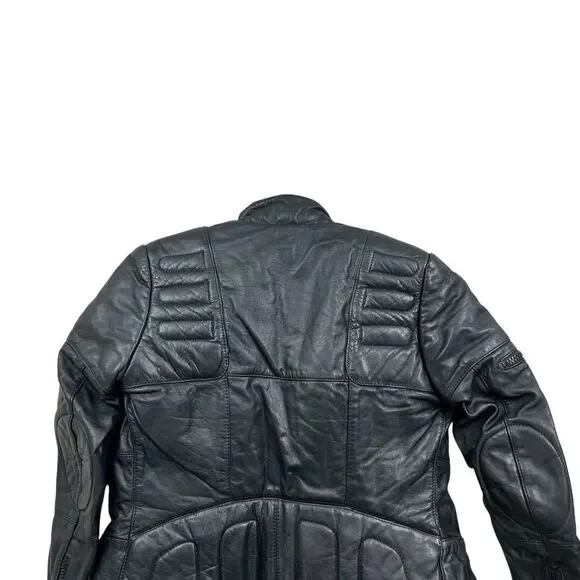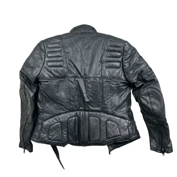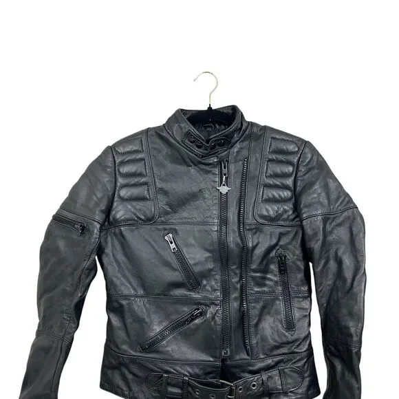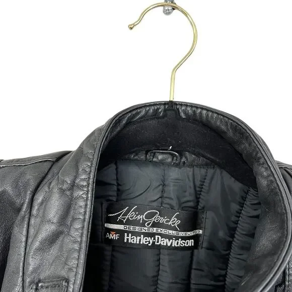 Harley Davidson Hein Gericke Women Leather Motorcycle Jacket Black Quilted 36REGContent: 100% Leather, Lining: Nylon Taffet, Interlining: Polyester Staple FiberRecommended: Kindly review measurements for proper fit.Size: 36REGPit to Pit: 19 inWaist: 17 inFull Length: 22 inSleeve Length: 22 inMeasurements are taken with garments laid flat and are approximate.Thanks for looking and be sure to follow as new items are listed regularly!Elevate your ride with this premium Harley-Davidson leather motorcycle jacket. Featuring sophisticated quilted detailing, multiple zippered pockets, and a belted waist for a flattering fit. Perfect for both casual rides and making a bold statement at bike meetups. The asymmetrical zipper and stand collar add edgy style to this authentic biker essential.Keywords: harley davidson, motorcycle jacket, leather jacket, biker jacket, quilted leather, womens motorcycle, hein gericke, black leather, moto jacket, belted jacket, asymmetrical zip