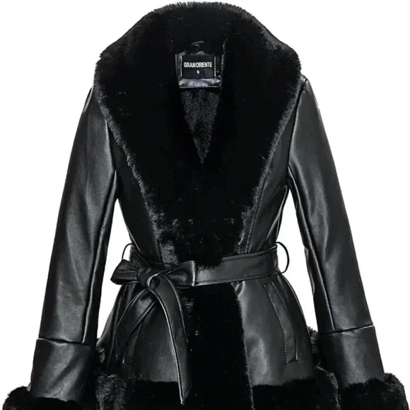 Faux Leather Jacket with Faux Fur Collar Long Sleeve Parka with Pockets Warm Winter Coat with BeltFabric Type68.8% Polyurethane, 28.3% Polyester, 1.6% Viscose, 1.3% CottonCare InstructionsHand Wash OnlyAbout this itemMATERIAL: 68.8% Polyurethane, 28.3% Polyester, 1.6% Viscose, 1.3% Cotton (Fabric), 100% Polyester (Lining), 100% Polyester (Fur). Soft and comfortable material warms you all winter. For fur collar care, lightly tap or use a hairdryer (do not use the hot wind) to blow in the direction of the fur.BASIC FEATURES: Faux leather jacket for women, women´s winter jacket, faux fur collar, open front closure, long sleeves. Suit for Valentine´s day gift, daily wear, school, vacation, work, club, party, street, great for Office or Sport Outdoor.PERFECT MATCH: Perfect to match with a basic T-shirt, crop top, leggings, black slacks, shorts, short skirt, skinny pants, jeans, bodycon dress, knee-high boots, or high heels.CARE TIPS: Wipe clean with soap and a damp cloth. Hand washes only, do not bleach, do not iron. Avoid washing mixed with other color clothing.