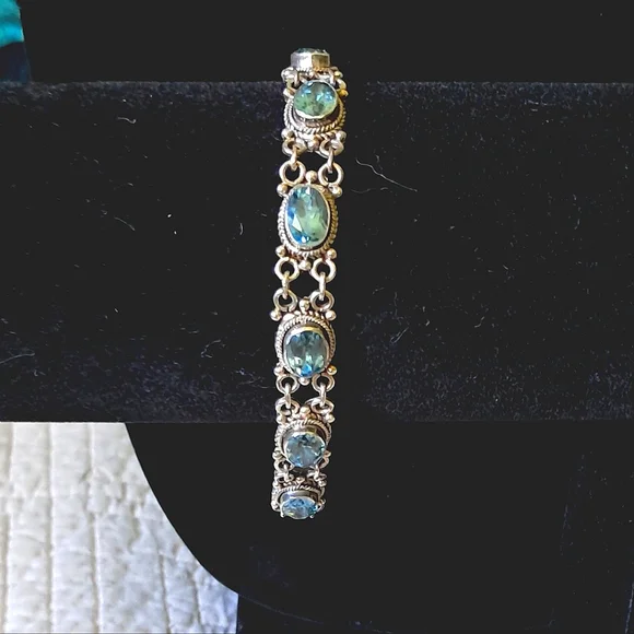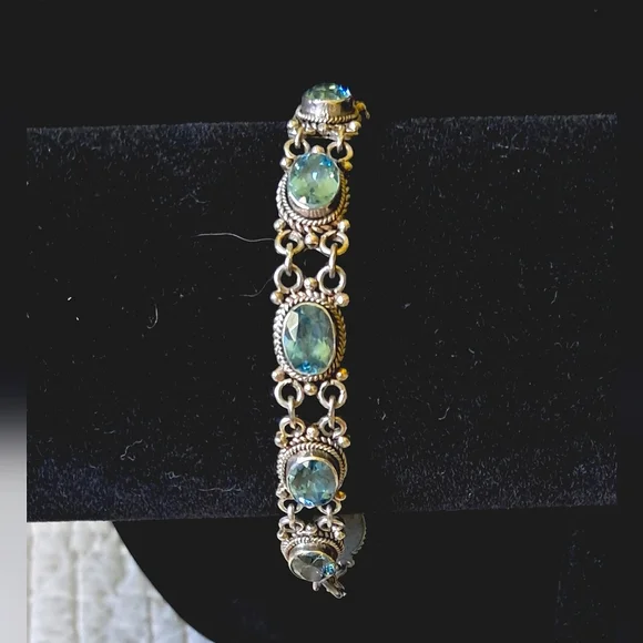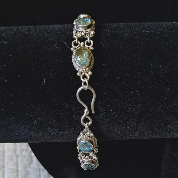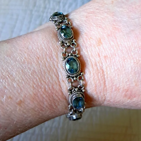 Beautiful faceted natural Swiss blue topaz solid sterling silver hallmarked handmade artisan bracelet. Beautiful detailing and excellent craftsmanship. No damage or defects that I...