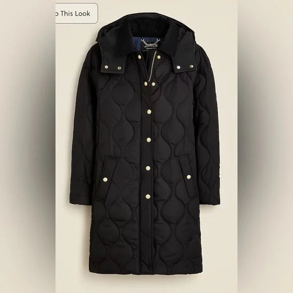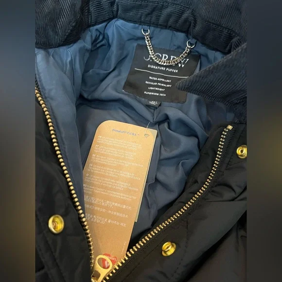 Size is tall xsmall (J.Crew recommends size tall for 5.9” and above) New with tagsTag and label marked through to prevent in store returns Color is black• Classic fit.• Hits below hip.Introducing our new favorite puffer fit for fall.A standout silhouette designed to keep you cozy through this season and the next, with curved quilting that feels fresh, a longer length and a heritage-inspired corduroy collar. Plus, it´s filled with PrimaLoft (a down alternative made from recycled materials) for all the extra warmth.• 100% recycled polyester.• Removable hood.• Snap closure with hidden zip.• Welt pockets.• Lined.• Machine wash.• Imported.• Item CD109