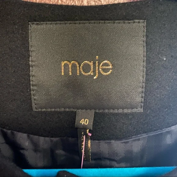 Maje black wool blazer with burgundy fur band size 40 EUR size large US
