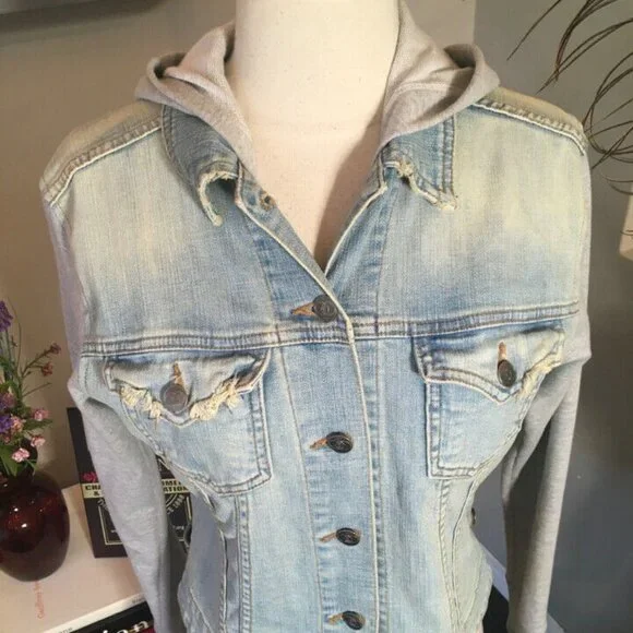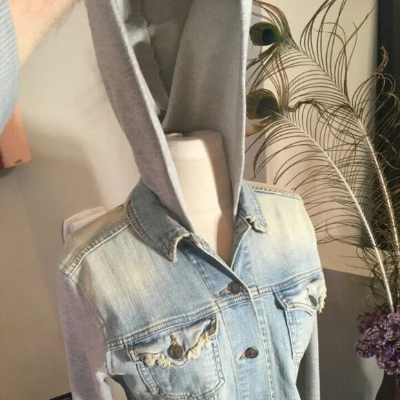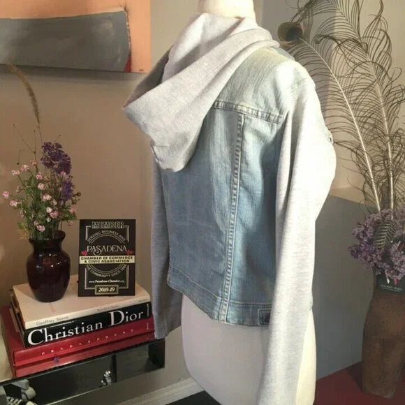 John Eshaya Blue Denim Gray Knit Hood Jacket