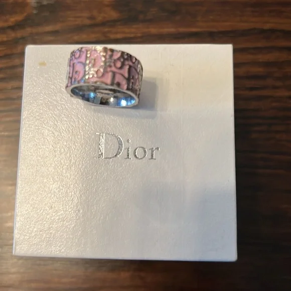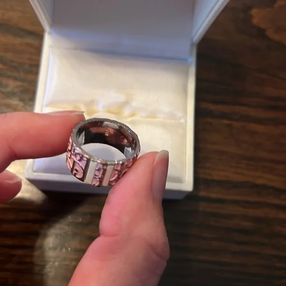 This is an authentic CHRISTIAN DIOR Silver Logo Trotter Ring size 6 in Pink. Vintage circa 2000s Y2KThis ring is crafted of silver with the Dior logo throughout on a recessed...