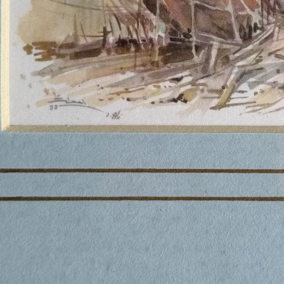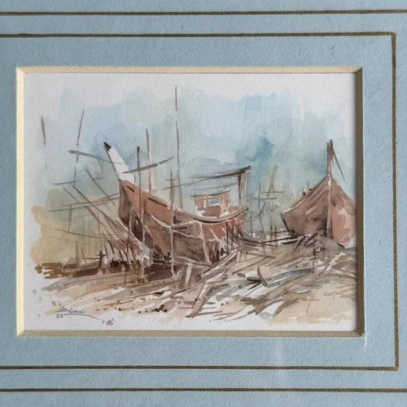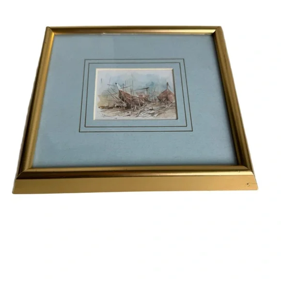 Original Artist Signed 93 Vintage Watercolor Painting Shipwreck Ship Graveyard Ships Aground Framed & Matted In United Arab Emirates Ready To HangFrame Aprx 8.75” wide x 8” high Art Aprx 3.5” wide x 2.5” high