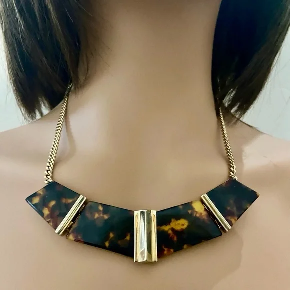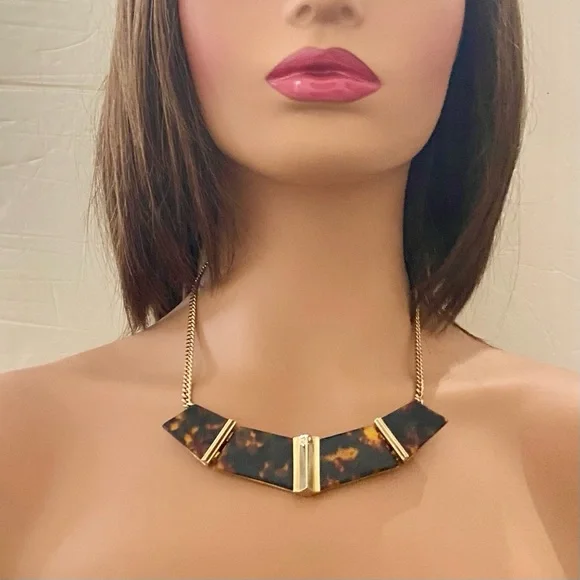 Vintage, Givenchy Gold Tone- Tortoise Chunky 20-in Necklace with Earrings