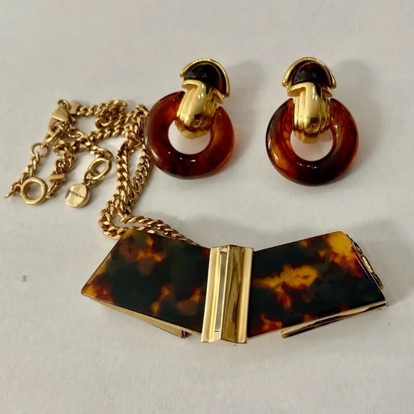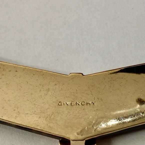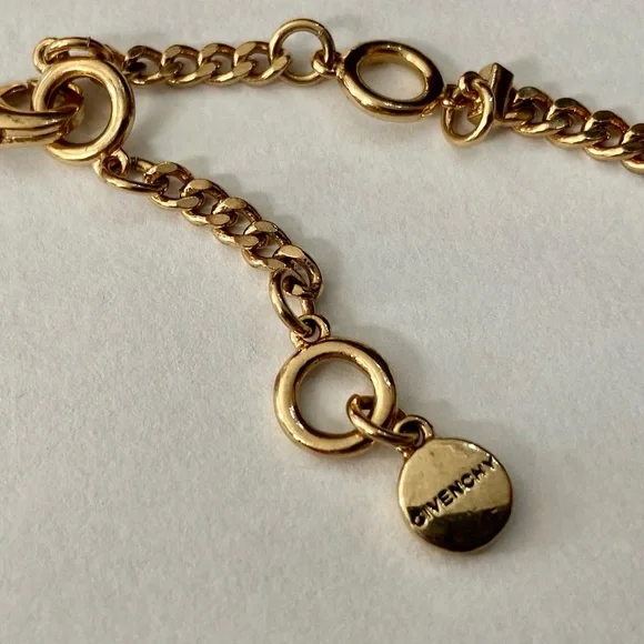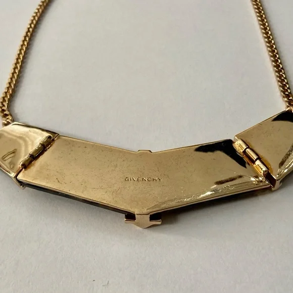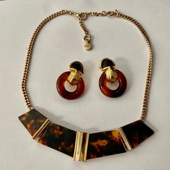Vintage, Givenchy Gold Tone -Tortoise 20-inch Necklace and Earrings (2T0625)This is a vintage, very elegant Givenchy, chunky gold tone 20-inch necklace. It is marked Givenchy but the gold tone clip earrings with tortoise are not marked. It is in very good condition as shown in photos.Givenchy began producing gold jewelry in the 1970s with particularly strong presence in the 1980s. The brand’s jewelry, including gold pieces is known for its bold luxurious designs and is often associated with the “power dressing” aesthetic of that era. Givenchy signatures such as: Givenchy Paris New York or Givenchy are usually found on an oval plaque and those made between 1975-1980 will be dated. The 1980s saw a significant expansion of Givenchy’s jewelry line with bold gold pieces including the iconic 4G logo on earrings and chunky chain necklaces becoming popular. Vintage Givenchy jewelry particularly from the 1970’s and 1980’s, remains highly sought after by collectors and fashion enthusiasts today.