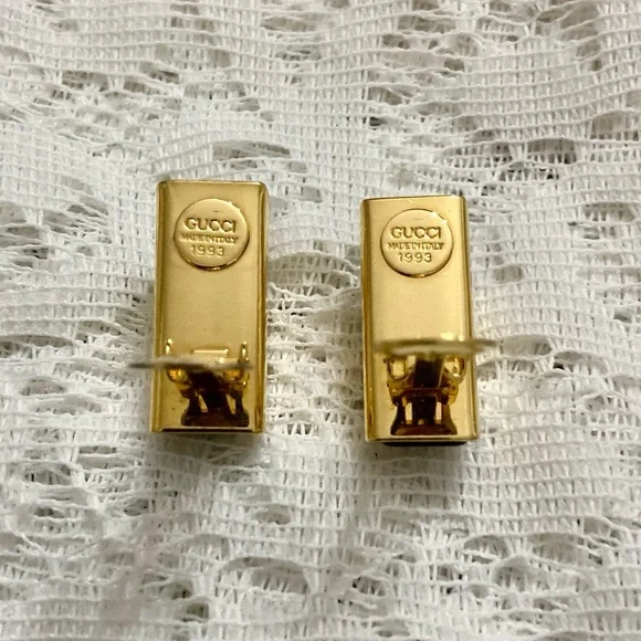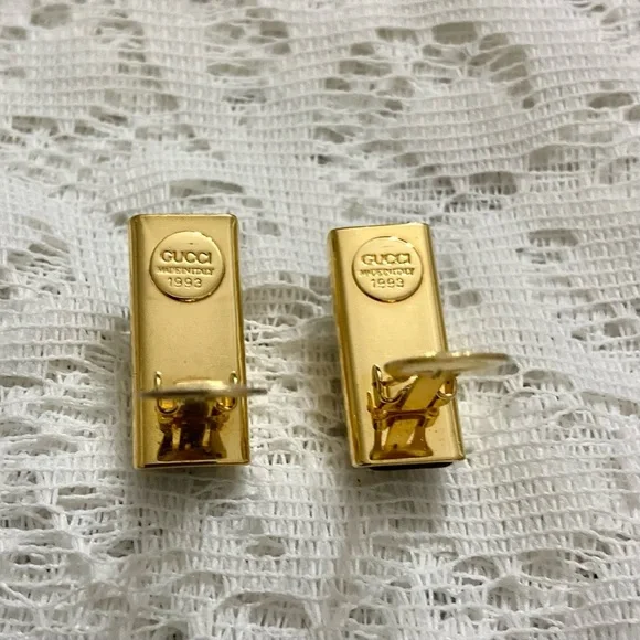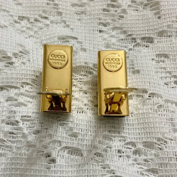 Vintage 1993 , Made in Italy Gold- Burgundy Clip Earrings 1/2in x 1/2in (Z0425)This is a beautiful clip earringsmade of gold tone metal and burgundy glass like material that resembles garnet. It measures 1.5 inches long and 1/2 inch wide. It is in very good condition as shown in photos. It is marked , Made in Italy 1993.