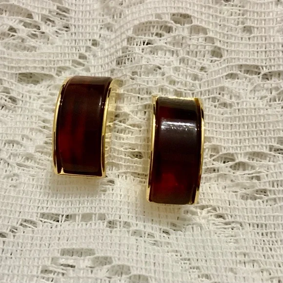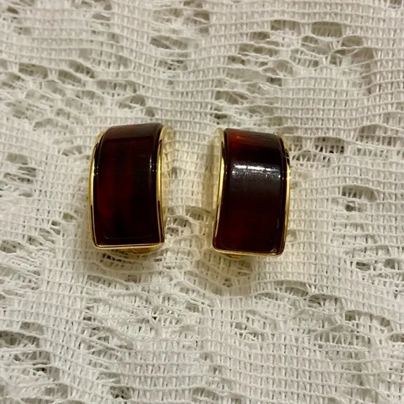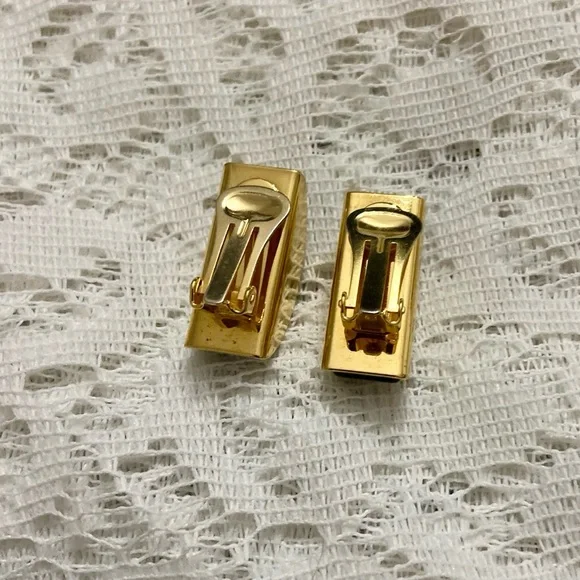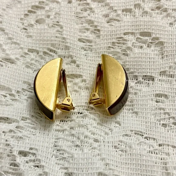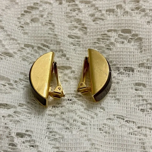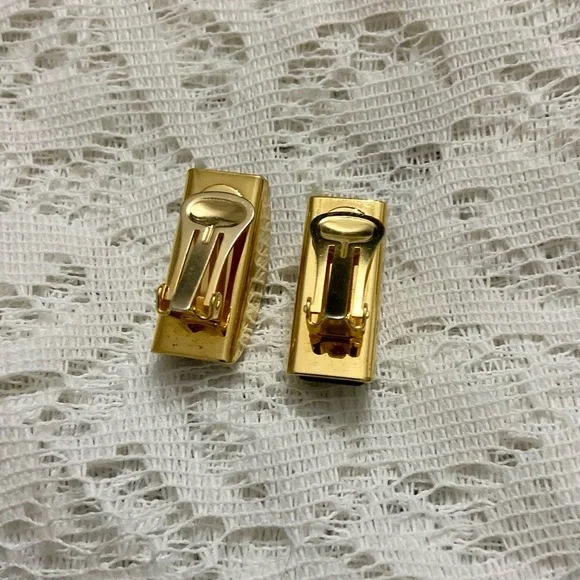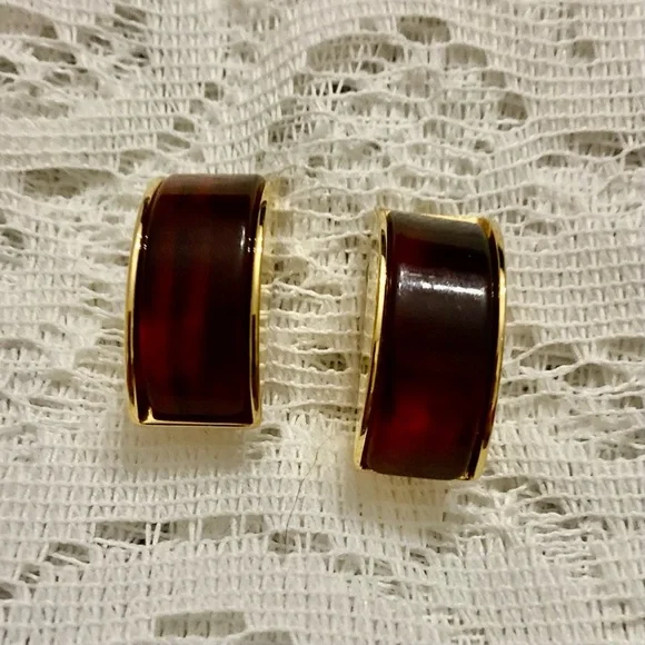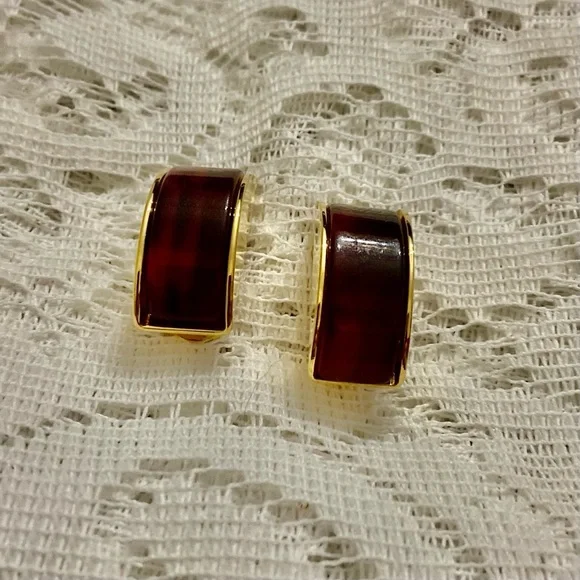 Vintage, , Italy 1993 Gold -Burgundy Clip Earrings 1.5in x 1/2 in